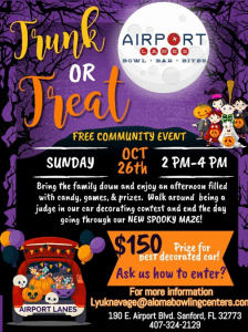 Free Community Event Set for Oct. 26 in Sanford ORLANDO, Fla. (Sept. 24, 2025) – Get ready for a spook-tacular afternoon of free family fun! Airport Lanes is once again