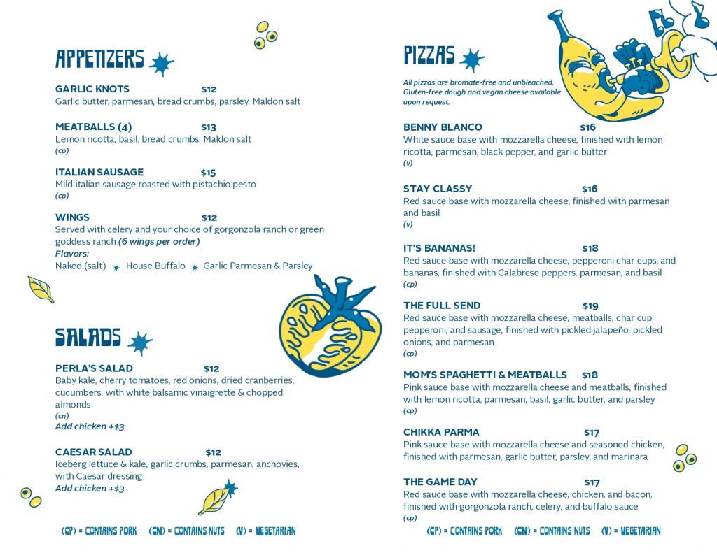 Each pizza is crafted with high-quality ingredients, house-made dough, and Collantes’ signature culinary touch. Whether you’re in the mood for something traditional or ready to explore new flavor profiles, every slice at Perla’s Pizza promises an unforgettable experience.